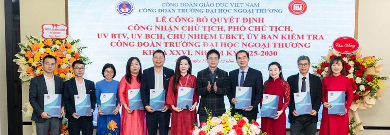Ngày 17/12/2025, Công đoàn Trường Đại học Ngoại Thương đã tổ chức Lễ công bố Quyết định công nhận Chủ tịch, Phó Chủ tịch, Ủy viên Ban thường vụ, Ủy viên Ban chấp hành, Chủ nhiệm Ủy ban kiểm tra và Ủy ban kiểm tra Công đoàn Trường ĐH Ngoại Thương nhiệm kỳ 2025–2030.