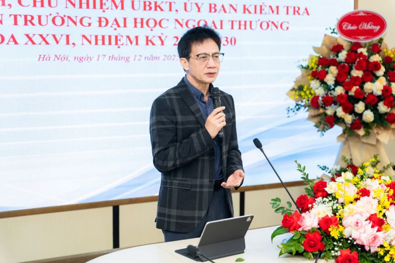 Phát biểu chỉ đạo, đồng chí Nguyễn Ngọc Ân đánh giá cao tinh thần nghiêm túc, trách nhiệm của Công đoàn Trường Đại học Ngoại thương; khẳng định sự chỉ đạo sâu sát của Đảng ủy Nhà trường và quyết tâm lớn của đội ngũ cán bộ công đoàn. Đồng chí nhấn mạnh: nhiệm kỳ mới sẽ có nhiều thách thức, đòi hỏi công đoàn phải bám sát cơ sở, tạo sức hút để các đoàn viên thực sự muốn tham gia các hoạt động công đoàn, bởi công đoàn các trường đại học mạnh chính là minh chứng cho Công đoàn Giáo dục Việt Nam vững mạnh.