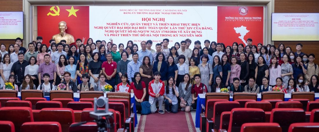Ngày 31/3/2026, Đảng uỷ Trường Đại học Ngoại Thương đã tổ chức Hội nghị học tập, quán triệt Nghị quyết Đại hội Đảng toàn quốc lần thứ XIV của Đảng, Nghị quyết số 02-NQ/TW ngày 17/03/2026 của Bộ Chính trị về xây dựng và phát triển Thủ đô Hà Nội trong kỷ nguyên mới và phát động Cuộc thi chính luận về bảo vệ nền tảng tư tưởng của Đảng lần thứ Sáu năm 2026.