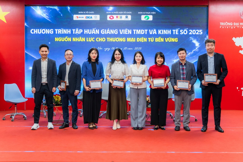 Thông qua các phiên chuyên đề, các giảng viên tham dự đã được bồi dưỡng kiến thức chuyên môn, cập nhật các xu hướng mới nhất của thị trường, từ đó nâng cao năng lực giảng dạy và mở rộng mạng lưới kết nối trong cộng đồng đào tạo thương mại điện tử trên toàn quốc. Kết thúc chương trình, Ban Tổ chức đã trao Giấy chứng nhận hoàn thành tập huấn cho các giảng viên tham dự đầy đủ nội dung.