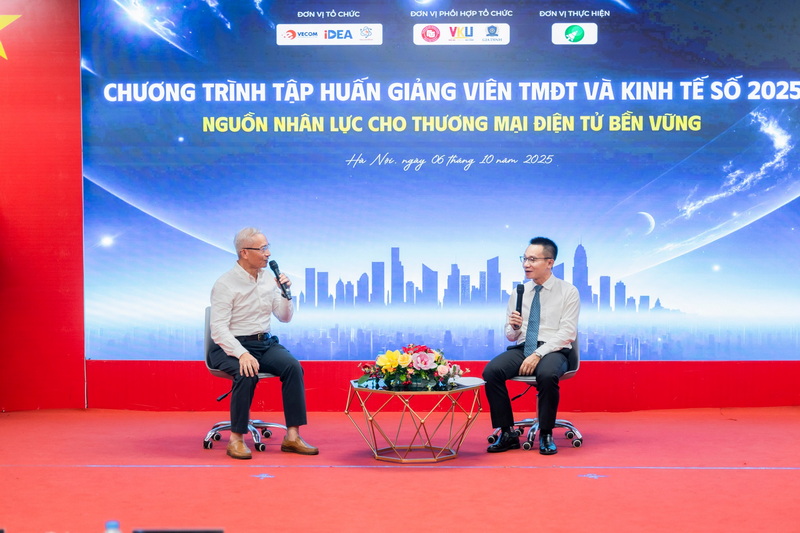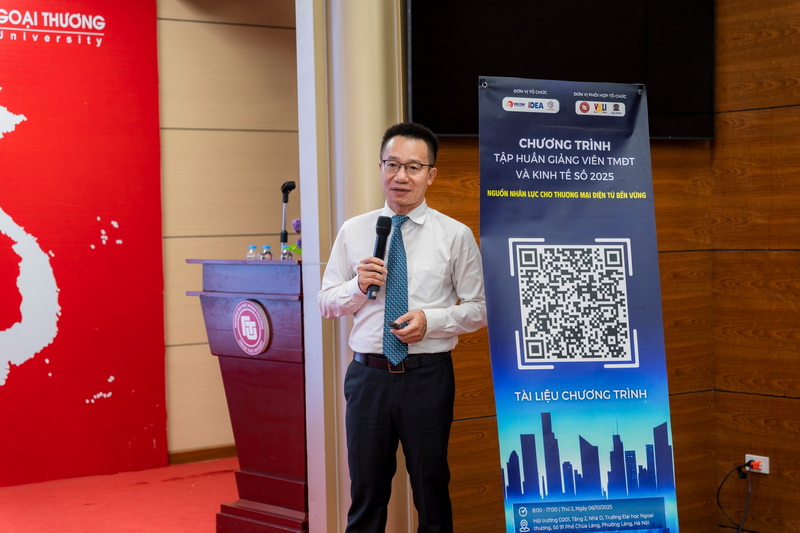 Ngày 06/10/2025, Trường Đại học Ngoại Thương đã phối hợp với Hiệp hội Thương mại điện tử Việt Nam (VECOM), Cục Thương mại điện tử và Kinh tế số – Bộ Công Thương (IDEA) tổ chức Chương trình Tập huấn Giảng viên Thương mại điện tử và Kinh tế số năm 2025 – Khu vực phía Bắc.