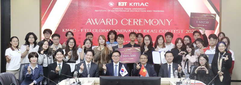 Ngày 26/11/2025, Viện Đào tạo và tư vấn Doanh nghiệp, Trường ĐH Ngoại Thương đã phối hợp với Công ty Tư vấn Quản lý Hàn Quốc (KMAC) tổ chức Lễ trao giải cuộc thi “KMAC – FTU Ý tưởng đổi mới sáng tạo toàn cầu 2025”, khép lại hành trình hơn 2 tháng tranh tài của các đội thi đầy tiềm năng đến từ 19 Đại học và Trường đại học hàng trên cả nước.