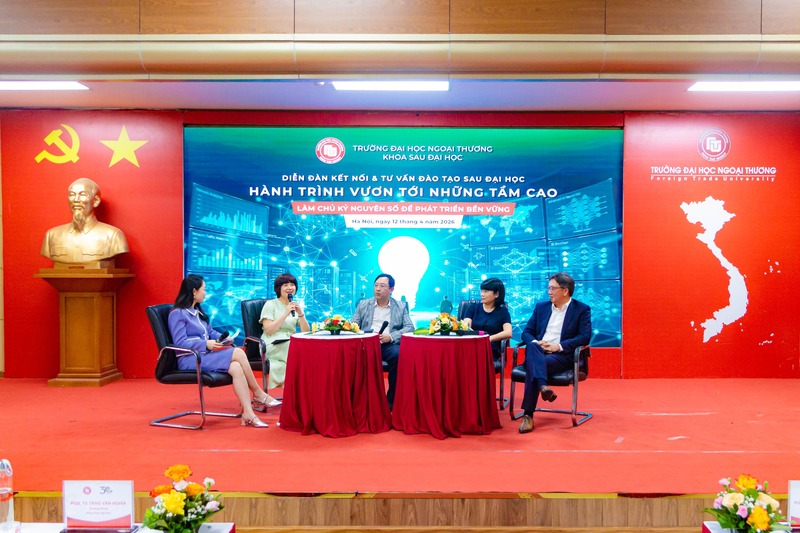 Ngày 12/4/2026, Trường Đại học Ngoại Thương tổ chức Diễn đàn kết nối và tư vấn đào tạo sau đại học: Hành trình vươn tới những tầm cao 2026 với chủ đề “Làm chủ kỷ nguyên số để phát triển bền vững” đã thu hút sự quan tâm của nhiều sinh viên năm cuối, cá nhân, cơ quan, tổ chức và doanh nghiệp đang tìm kiếm cơ hội học tập, phát triển chuyên môn và nguồn nhân lực trình độ cao.
