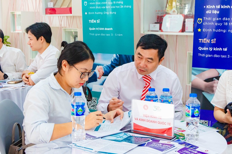 Nội dung Diễn đàn được thiết kế theo định hướng kết nối và tư vấn tới từng cá nhân, tập trung hỗ trợ người học định hình lộ trình học tập phù hợp với mục tiêu nghề nghiệp trong bối cảnh thị trường lao động đang chuyển dịch nhanh dưới tác động của công nghệ, toàn cầu hóa và biến động địa chính trị. Không gian tư vấn trực tiếp được tổ chức đồng bộ, tạo điều kiện để người học tiếp cận đầy đủ thông tin về các chương trình thạc sĩ và tiến sĩ của Trường Đại học Ngoại Thương, đồng thời nhận được sự tư vấn chuyên sâu về lựa chọn ngành học, định hướng phát triển năng lực và xây dựng chiến lược nghề nghiệp theo hướng dài hạn và bền vững.