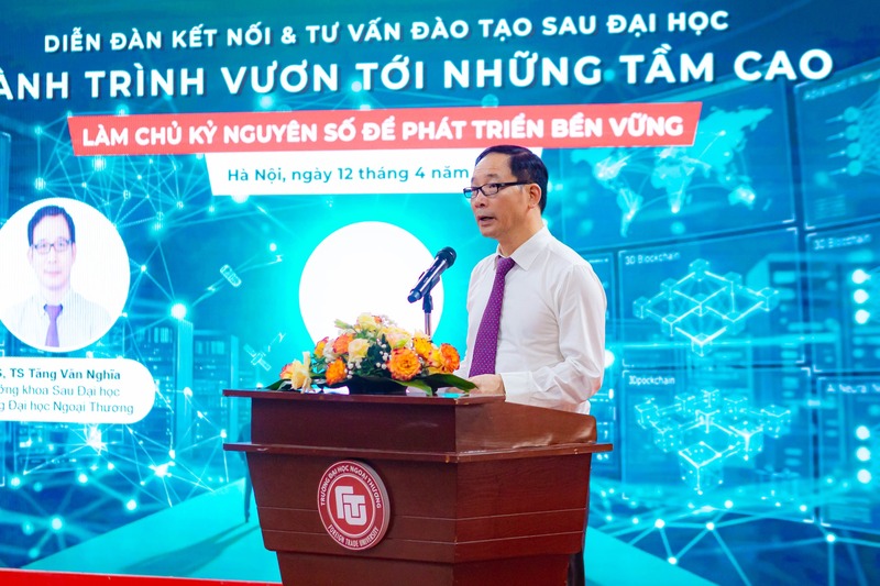 Phát biểu khai mạc chương trình, PGS, TS Tăng Văn Nghĩa – Trưởng Khoa Sau đại học, Trường Đại học Ngoại Thương nhấn mạnh vai trò của đào tạo sau đại học trong việc giúp người học nâng cao năng lực thích ứng và làm chủ kỷ nguyên số. Ông cho rằng đào tạo sau đại học không chỉ là cung cấp tri thức chuyên sâu mà góp phần nâng cao năng lực thích ứng, sáng tạo và làm chủ công nghệ, giúp người học chủ động nắm bắt cơ hội và phát triển bền vững trong kỷ nguyên số. Nhà trường khẳng định định hướng phát triển các chương trình chất lượng cao, gắn với thực tiễn và hội nhập quốc tế, đồng thời kỳ vọng Diễn đàn sẽ góp phần định hướng người học lựa chọn lộ trình phù hợp và chủ động đầu tư cho phát triển dài hạn.