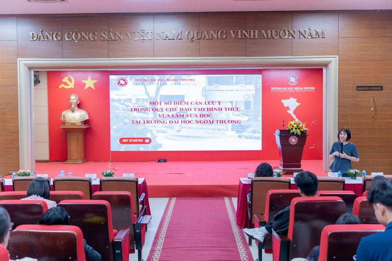 Tiếp nối chương trình, đại diện các Viện/Khoa chuyên môn đã trực tiếp trao đổi, cung cấp thông tin chi tiết và chuyên sâu về nội dung chương trình đào tạo hiện đại, linh hoạt, đảm bảo chất lượng và tính ứng dụng cao cũng như cơ hội nghề nghiệp rộng mở, tiềm năng phát triển và khả năng thăng tiến của sinh viên sau khi tốt nghiệp các chương trình VLVH của Ngoại Thương. Tại phần định hướng, sinh viên cũng được nghe phổ biến về quy chế đào tạo, những quy định, hướng dẫn của Nhà trường cùng những hoạt động hỗ trợ người học.