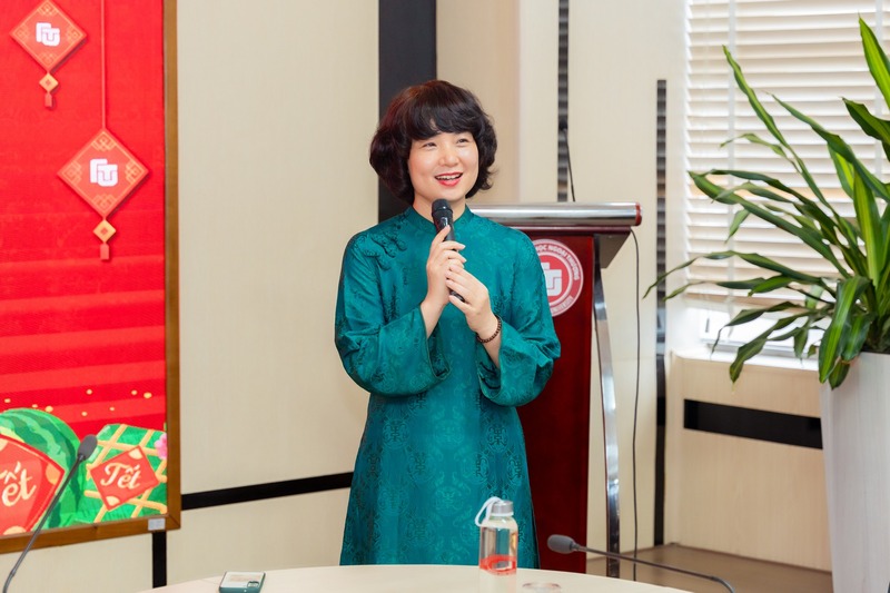 Thay mặt tập thể sư phạm Nhà trường, PGS, TS Phạm Thu Hương bày tỏ niềm vinh dự, phấn khởi, trân trọng cảm ơn sự quan tâm, chỉ đạo và tạo điều kiện của lãnh đạo Bộ GD&ĐT đối với sự phát triển của Nhà trường trong suốt thời gian qua. Hiệu trưởng nhấn mạnh tinh thần đoàn kết – đồng lòng là nền tảng để tập thể hoàn thành các mục tiêu đã đề ra, đặc biệt trong bối cảnh nhiều biến động và khoa học – công nghệ phát triển nhanh. Nhà trường kiên định tinh thần chủ động đổi mới, sẵn sàng học hỏi và thích nghi để làm chủ trong mọi bối cảnh; đồng thời ghi nhận năm 2025 là giai đoạn có nhiều thay đổi mạnh mẽ của giáo dục, trong đó có giáo dục đại học.