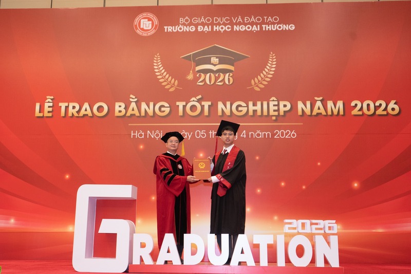 Ngày 05/4/2026, Trường Đại học Ngoại Thương trang trọng tổ chức Lễ trao bằng tốt nghiệp đợt 1 năm 2026 cho 1.265 sinh viên đại học hình thức đào tạo chính quy khóa 61 và các khóa bổ sung tại Trụ sở chính Hà Nội và Cơ sở Quảng Ninh.
