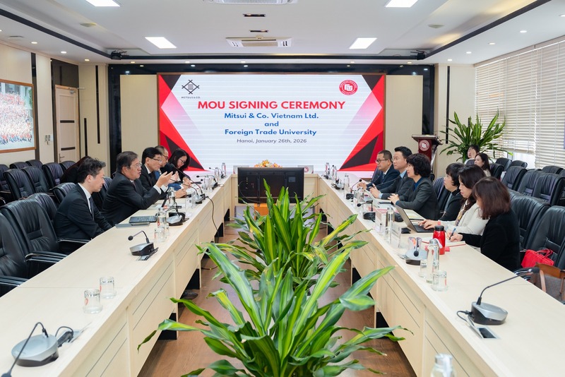 Ngày 26/01/2026, Trường Đại học Ngoại Thương đã tổ chức Lễ ký kết Biên bản ghi nhớ hợp tác với Công ty TNHH Mitsui Việt Nam. Sự kiện đánh dấu một cột mốc quan trọng trong chiến lược tăng cường hợp tác giữa nhà trường và doanh nghiệp, hướng tới mục tiêu gắn kết đào tạo với thực tiễn và phát triển nguồn nhân lực chất lượng cao trong bối cảnh hội nhập quốc tế sâu rộng.