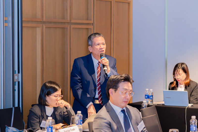 Trong phần phát biểu dẫn đề, TS. Đậu Anh Tuấn – Phó Tổng thư ký kiêm Trưởng Ban Pháp chế VCCI – đã phác họa bức tranh toàn cảnh về thương mại và đầu tư Việt Nam – Hàn Quốc sau 10 năm thực thi VKFTA, nhấn mạnh những thành tựu tăng trưởng ấn tượng trong trao đổi hàng hóa, đầu tư FDI và mức độ gắn kết ngày càng sâu của doanh nghiệp hai nước trong chuỗi cung ứng khu vực. Ông cũng chia sẻ góc nhìn từ cộng đồng doanh nghiệp về lợi ích mà các FTA mang lại, từ cắt giảm thuế quan, thuận lợi hóa thương mại đến cải thiện năng lực cạnh tranh, đồng thời chỉ ra các hạn chế trong việc tận dụng ưu đãi và nhu cầu tăng cường hỗ trợ kỹ thuật. Trên cơ sở bối cảnh địa chính trị và kinh tế toàn cầu biến động mạnh, TS. Đậu Anh Tuấn đề xuất yêu cầu nâng cấp hợp tác, mở rộng phạm vi FTA, thúc đẩy đổi mới sáng tạo, chuyển đổi xanh – số và tiếp tục đồng hành cùng doanh nghiệp nhằm khai thác hiệu quả hơn các cơ hội mà VKFTA và mạng lưới FTA mang lại.
