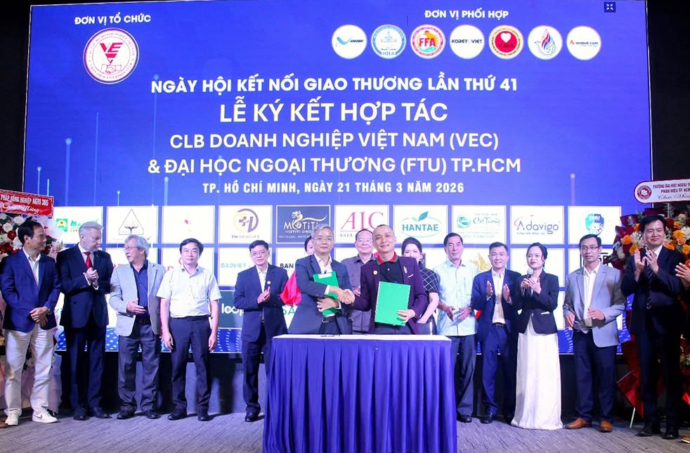Ngày 21/3/2026, trong khuôn khổ Ngày hội Kết nối Giao thương lần thứ 41, Phân hiệu Trường Đại học Ngoại Thương tại TP. Hồ Chí Minh và Câu lạc bộ Doanh nghiệp Việt Nam (VEC) đã ký kết Thỏa thuận hợp tác, hướng đến mục tiêu tăng cường kết nối cơ sở đào tạo với cộng đồng doanh nghiệp.