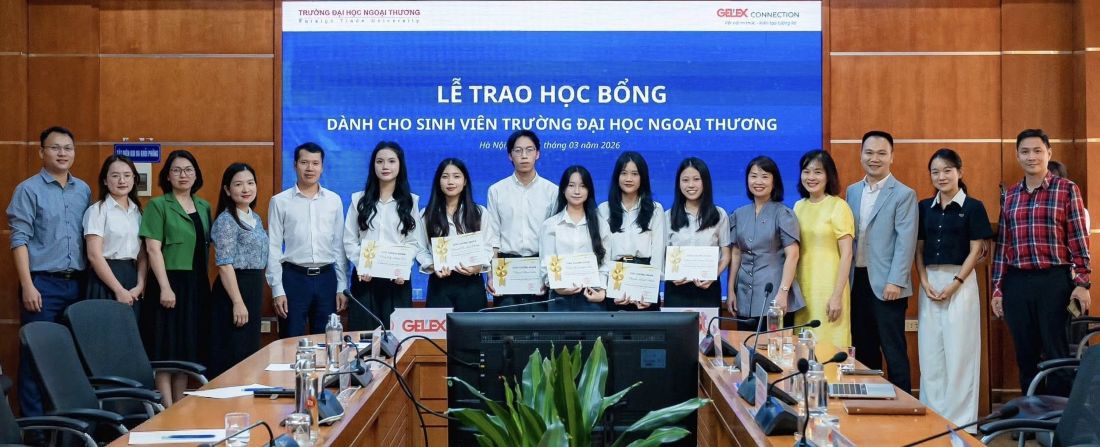 Ngày 31/3/2026, Trường Đại học Ngoại Thương phối hợp cùng Tập đoàn GELEX trang trọng tổ chức Lễ trao Học bổng “GELEX EMPOWERMENT & GELEX TALENT SCHOLARSHIP 2026”, tiếp nối dấu mốc ý nghĩa trong khuôn khổ Thỏa thuận hợp tác chiến lược giữa hai bên.