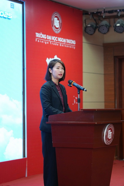 Phát biểu khai mạc chương trình, PGS, TS Vũ Thị Hiền nhấn mạnh vai trò và mối quan hệ giữa Nhà trường và các Tổ chức doanh nghiệp trong hệ sinh thái giáo dục, đào tạo của Trường ĐH Ngoại Thương. Nhà trường luôn chú trọng kết nối các bên liên quan tham gia đào tạo và hướng nghiệp cho sinh viên, từ đó cung cấp nguồn nhân lực chất lượng cao cho xã hội. Nhân dịp này, PGS, TS Vũ Thị Hiền cũng gửi lời cảm ơn sâu sắc tới các tổ chức, doanh nghiệp trong và ngoài nước đã hỗ trợ, đồng hành cùng Nhà trường trong hoạt động vừa qua, cũng như bày tỏ mong muốn sẽ tiếp tục nhận được sự đồng hành trong tương lai.