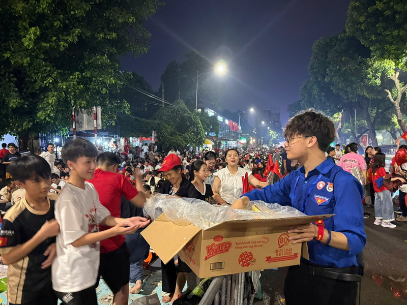 Đảm nhiệm trọng trách cấp phát nhu yếu phẩm tại 7 điểm trên tuyến đường diễu binh - diễu hành, các tình nguyện viên Ngoại Thương không chỉ trao đi những chai nước mát, những suất quà, mà còn gửi gắm niềm tin, tình yêu và trách nhiệm của thế hệ trẻ hôm nay với Tổ quốc, góp phần chung vào thành công của Đại lễ lịch sử.