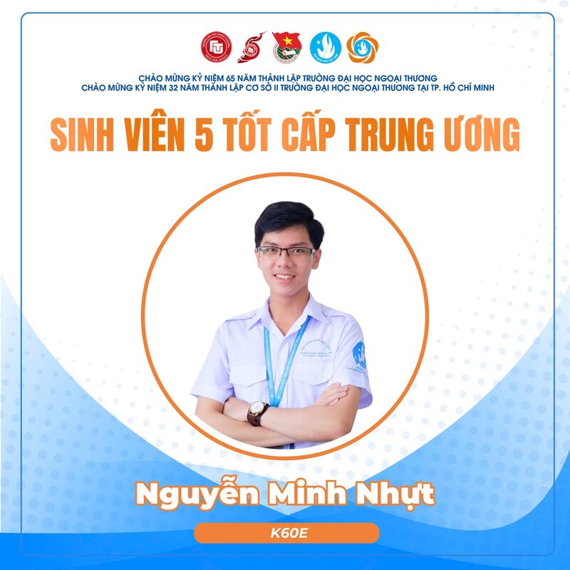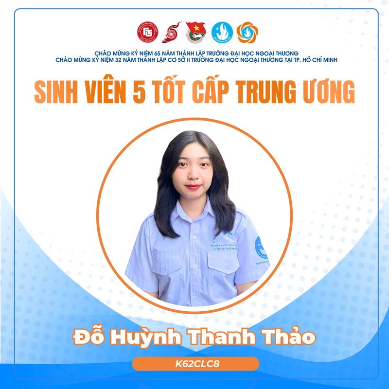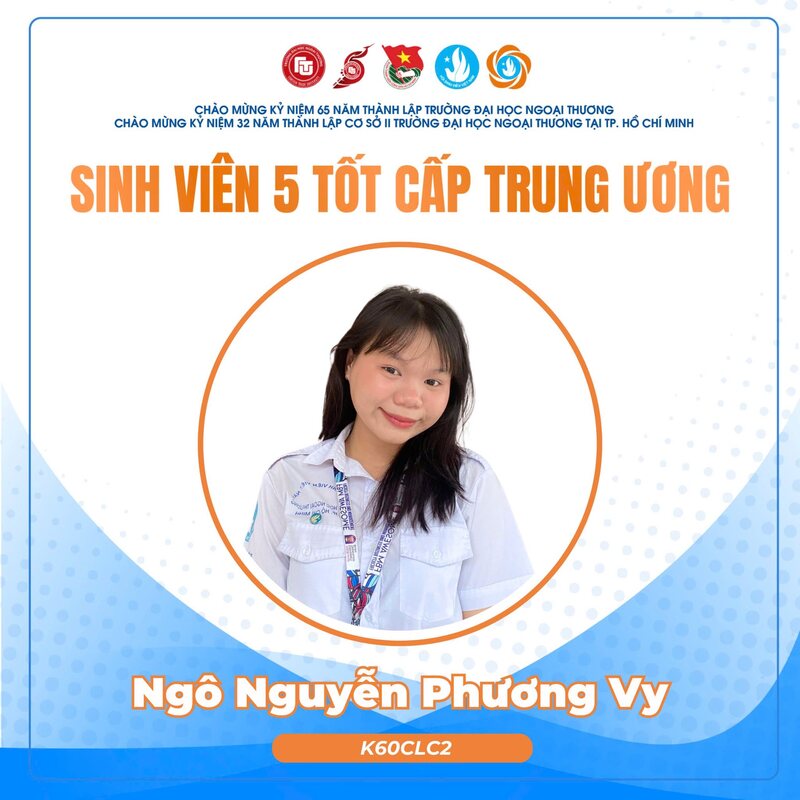 Danh hiệu “Sinh viên 5 Tốt” cấp Trung ương là danh hiệu cao quý dành cho sinh viên có thành tích xuất sắc, được xét chọn trong số các trường Đại học, Học viện và Cao đẳng trên toàn quốc. Năm nay, trường Đại học Ngoại Thương vinh dự ghi dấu ấn với 10 gương mặt tiêu biểu được vinh danh tại cả Hà Nội và TP Hồ Chí Minh. Đây là minh chứng rõ nét cho những đóng góp, thành tích nổi bật của sinh viên Ngoại Thương trong quá trình học tập và rèn luyện; đồng thời tiếp tục khẳng định các giá trị khác biệt cùng môi trường, chất lượng đào tạo, hội nhập toàn diện của trường Đại học Ngoại Thương.