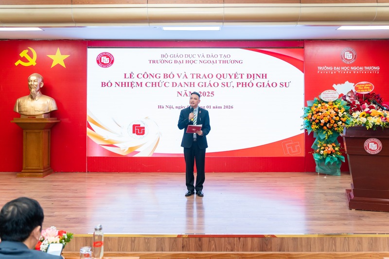 Ngày 05/01/2026, Trường ĐH Ngoại thương đã trang trọng tổ chức Lễ công bố và trao Quyết định bổ nhiệm chức danh Giáo sư, Phó Giáo sư cho 12 giảng viên Nhà trường.