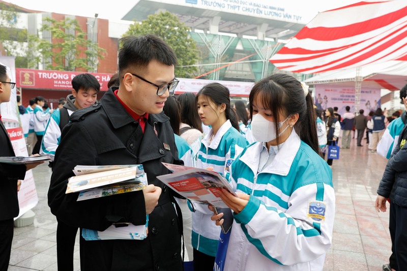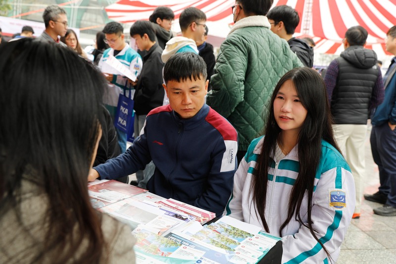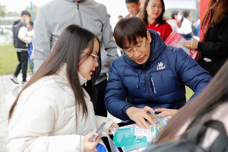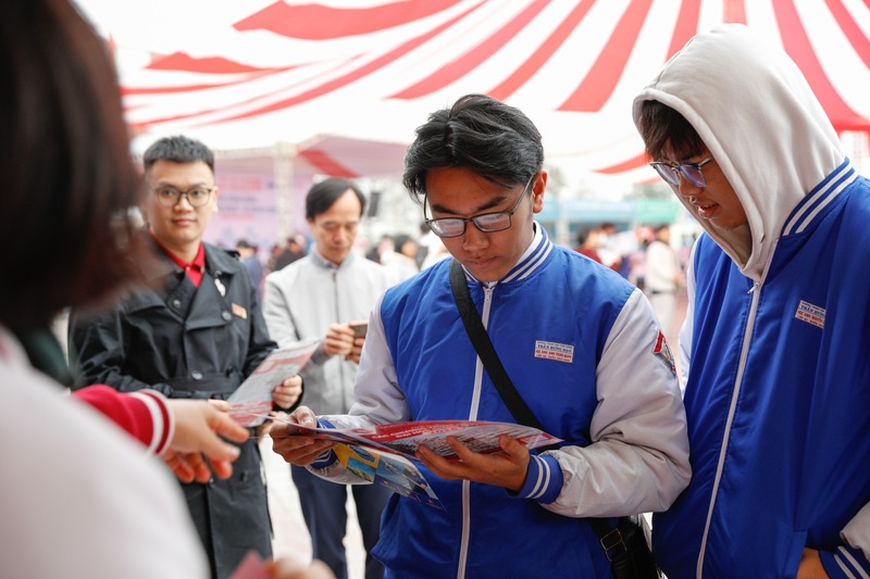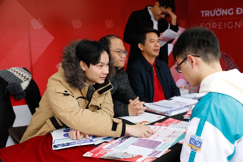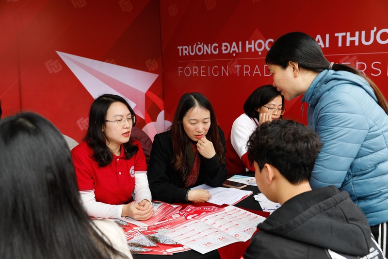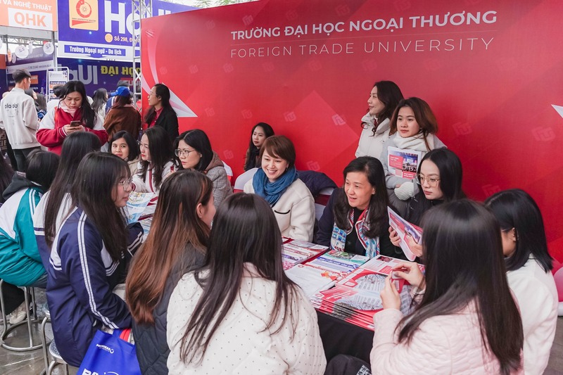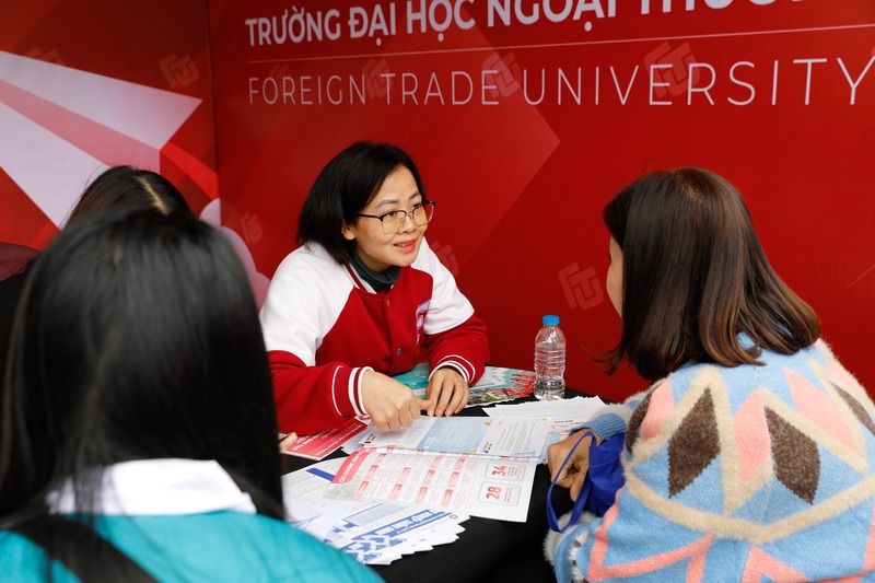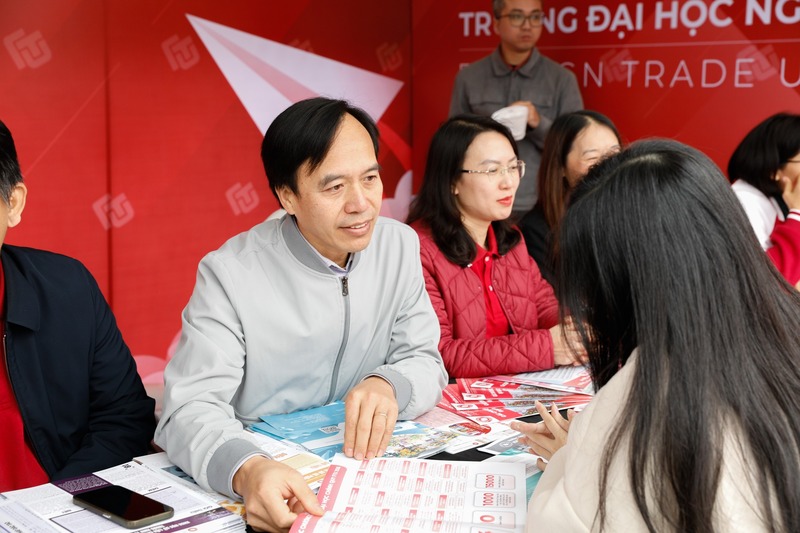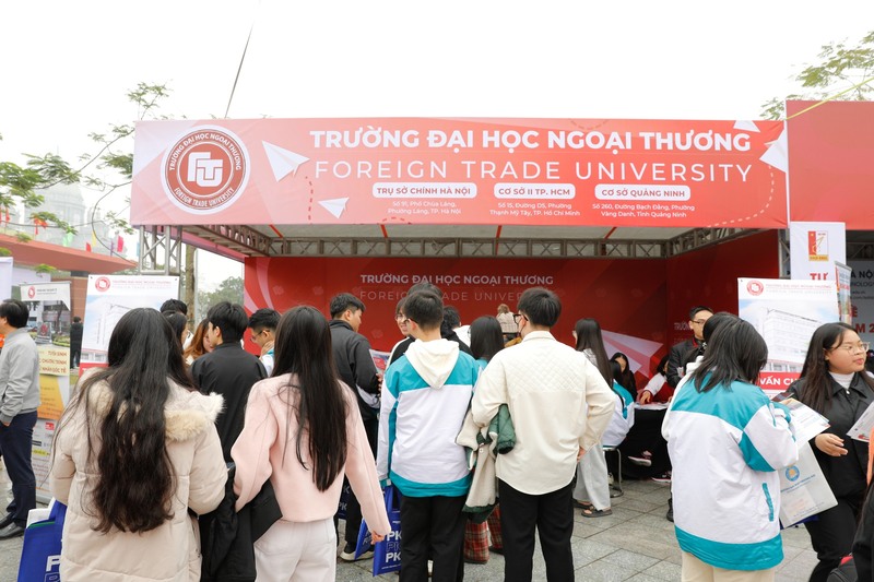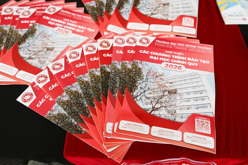 Gian tư vấn của Nhà trường đã thu hút sự quan tâm của đông đảo học sinh và phụ huynh. Tại gian tư vấn, các thầy cô đã nhiệt tình giới thiệu những thông tin quan trọng về các phương thức xét tuyển, các chương trình đào tạo năm 2026 tại Trường Đại học Ngoại Thương. Đồng thời, các em học sinh cũng được lắng nghe trực tiếp những chia sẻ hữu ích về môi trường học tập, điều kiện xét tuyển và các chương trình hỗ trợ sinh viên.