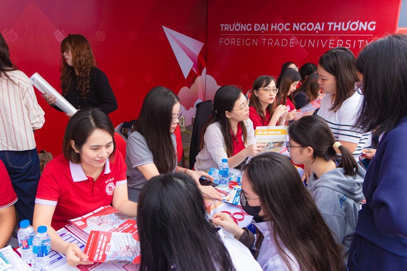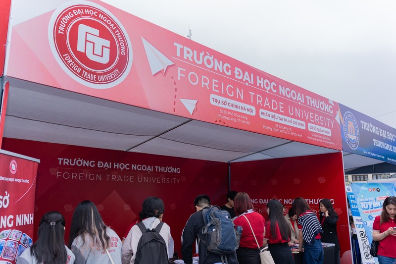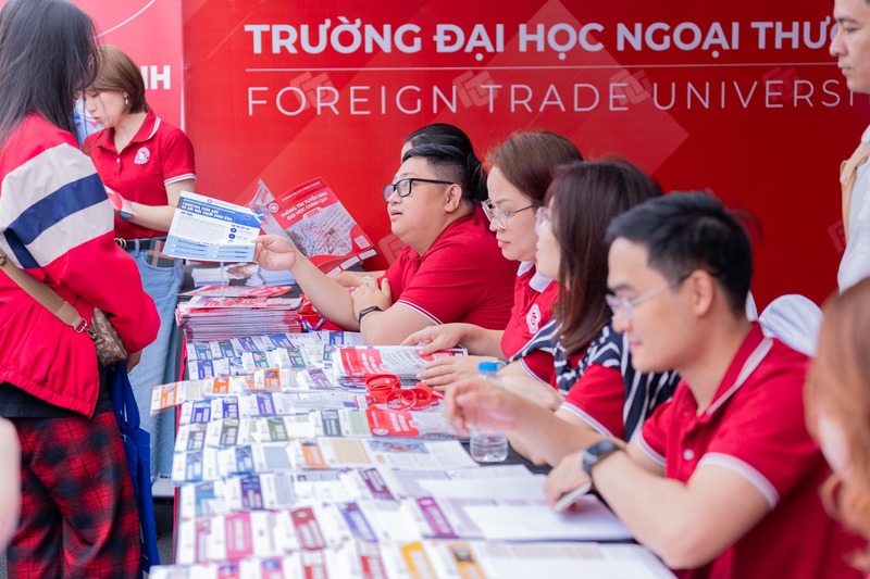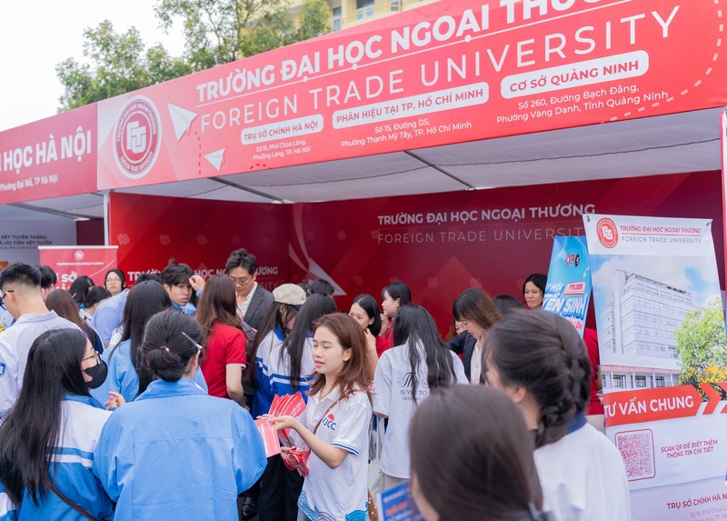 Tại gian tư vấn tuyển sinh - hướng nghiệp của Trường Đại học Ngoại thương, các em học sinh cùng phụ huynh đã được lắng nghe tư vấn trực tiếp từ các thầy cô giáo Nhà trường trong việc chọn ngành học, giới thiệu về các phương thức tuyển sinh năm 2026 đồng thời giúp cho các em cái nhìn tổng quan về môi trường học tập tại trường. Qua những chia sẻ, lời khuyên hữu ích của các thầy cô, các anh chị đem đến, nhiều thắc mắc của các em liên quan đến kỳ thi tốt nghiệp THPT và xét tuyển đại học năm 2026.