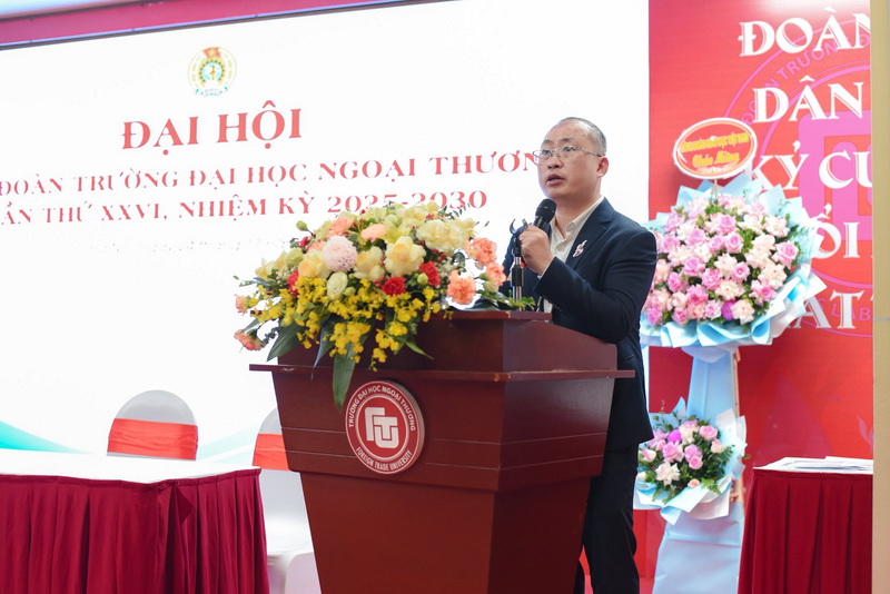 Phát biểu chỉ đạo Đại hội, đồng chí Nguyễn Ngọc Ân – Chủ tịch Công đoàn Giáo dục Việt Nam ghi nhận và đánh giá cao những kết quả nổi bật mà Công đoàn Trường ĐH Ngoại Thương đã đạt được trong nhiệm kỳ vừa qua. Đồng chí nhấn mạnh, với vị thế là một trong những cơ sở giáo dục đại học hàng đầu cả nước, Công đoàn Trường ĐH Ngoại Thương đã khẳng định được vai trò của một công đoàn cơ sở vững mạnh, hoạt động bài bản, sáng tạo và hiệu quả. Công đoàn Trường đã bám sát chức năng, nhiệm vụ của tổ chức công đoàn; chăm lo đời sống, bảo vệ quyền và lợi ích hợp pháp, chính đáng của đoàn viên bằng nhiều hình thức và hoạt động thiết thực; đồng thời tích cực tham gia xây dựng cơ chế, chính sách nội bộ, góp phần cải thiện thu nhập, điều kiện làm việc và đời sống tinh thần cho đội ngũ nhà giáo và người lao động. Những nỗ lực đó đã giúp xây dựng môi trường làm việc dân chủ, cởi mở, giàu tính sáng tạo, hình thành văn hóa nhà trường mẫu mực, văn minh.