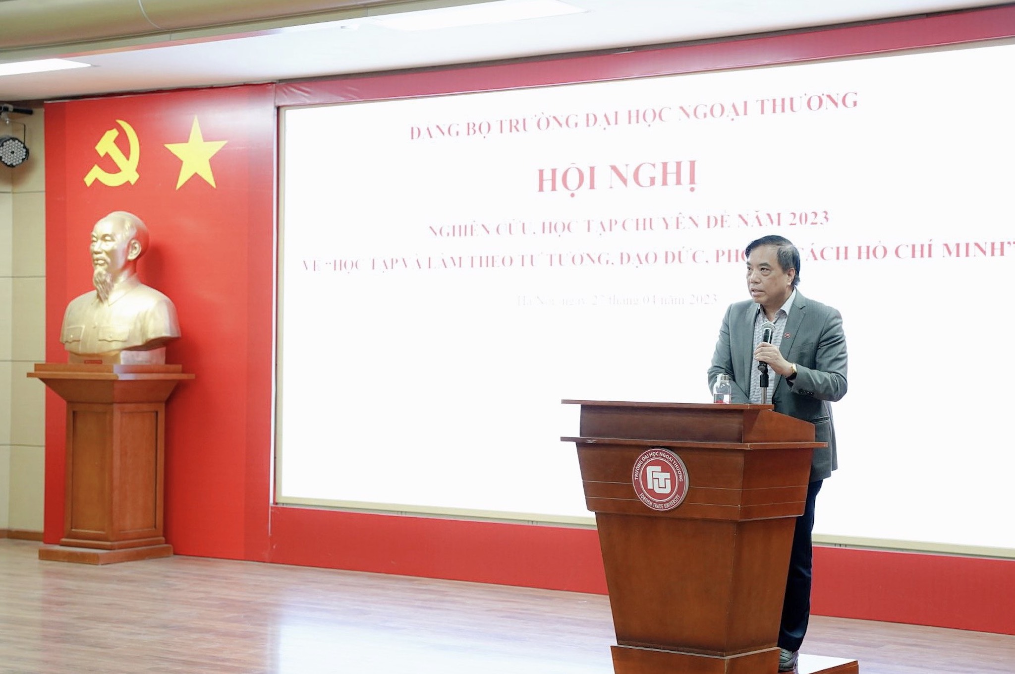 Ngày 27/04/2023, Đảng ủy Trường Đại học Ngoại thương tổ chức Hội nghị học tập, nghiên cứu chuyên đề năm 2023 về “Học tập và làm theo tư tưởng, đạo đức, phong cách Hồ Chí Minh” cho toàn thể cán bộ, đảng viên của Đảng bộ trường.