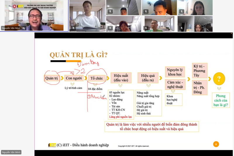 Ngày 4/6/2024, Viện Đào tạo và Tư vấn doanh nghiệp, Trường ĐH Ngoại Thương tổ chức buổi Lễ khai giảng lớp Quản trị kinh doanh thu gọn (Online Mini MBA) khóa K2403 và triển khai bài học đầu tiên “Nhập môn nghề quản trị".