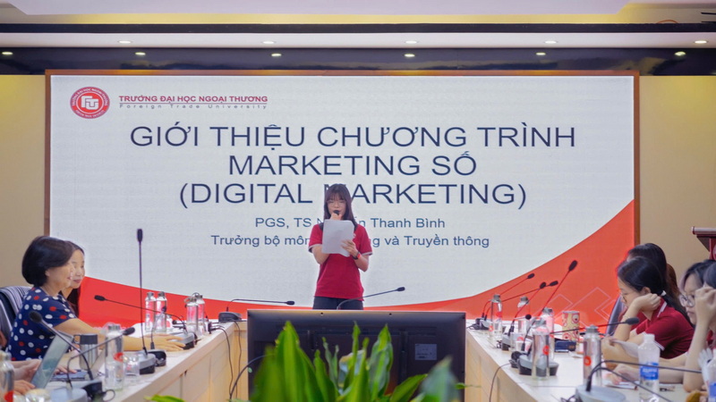 Tại chương trình, PGS, TS Nguyễn Thị Thanh Bình đã có phần giới thiệu tổng quan về chương trình Marketing số. Cô đặc biệt nhấn mạnh vào những lợi thế cùng những điểm khác biệt của chương trình như các môn học có sự tham gia đồng hành, hướng dẫn của những chuyên gia, doanh nghiệp giàu kinh nghiệm trong lĩnh vực Marketing, Truyền thông, cùng những cơ hội học tập, trải nghiệm thực tế thông qua nhiều phương pháp giảng dạy mới mẻ, sáng tạo.