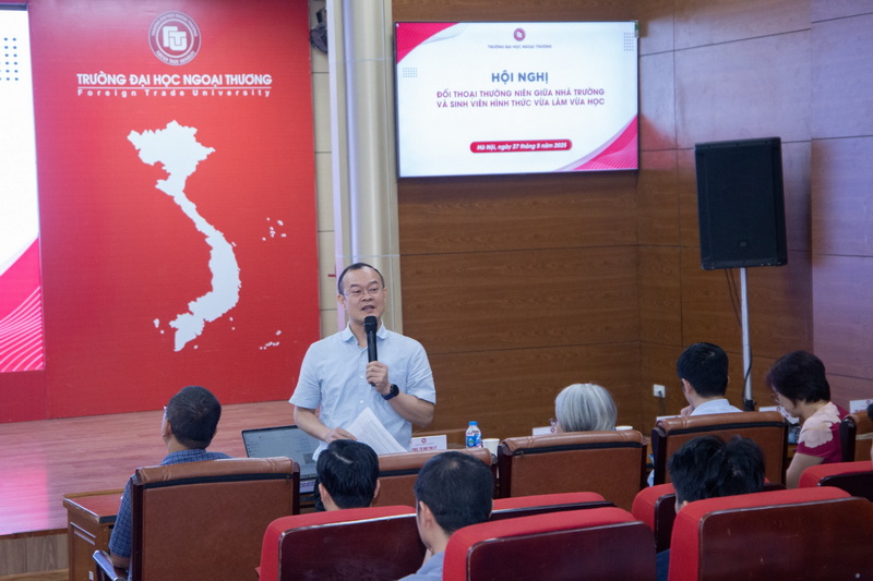 Ngày 27/5/2025, Trường Đại học Ngoại thương đã tổ chức Hội nghị đối thoại thường niên giữa Nhà trường và sinh viên hình thức Vừa làm Vừa học (VLVH) năm học 2024-2025.