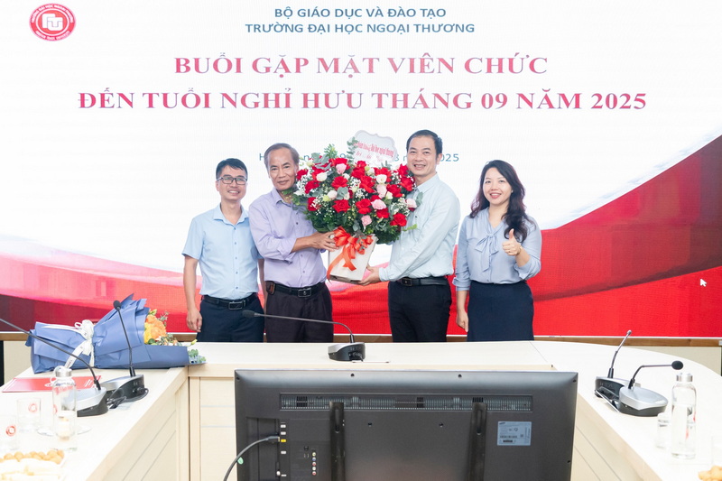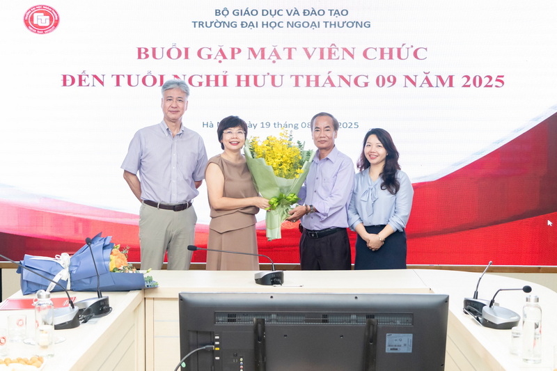 Ngày 19/8/2025, Trường ĐH Ngoại thương đã tổ chức buổi gặp mặt chia tay TS Tô Bình Minh - Giảng viên chính, Phó Viện trưởng Viện Phát Triển Nguồn Nhân Lực Việt Nam - Nhật Bản (VJCC), Giám đốc Phân Viện tại Thành phố Hồ Chí Minh nghỉ hưu theo chế độ của Nhà nước.