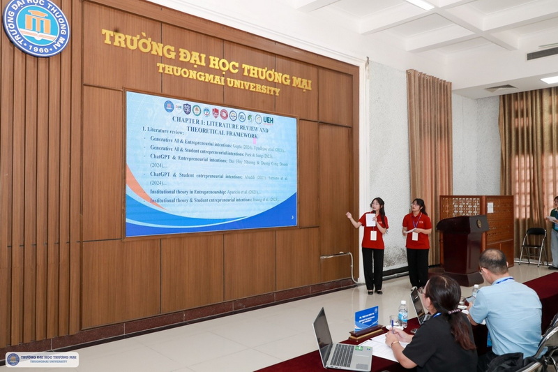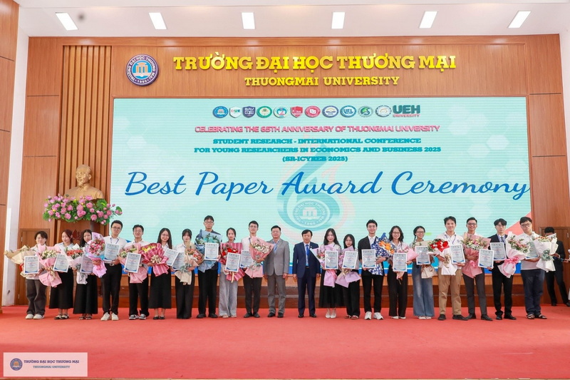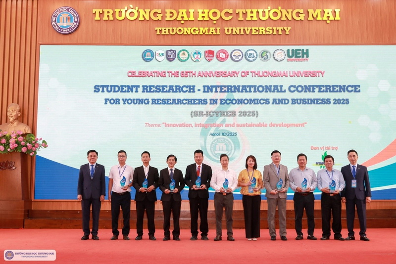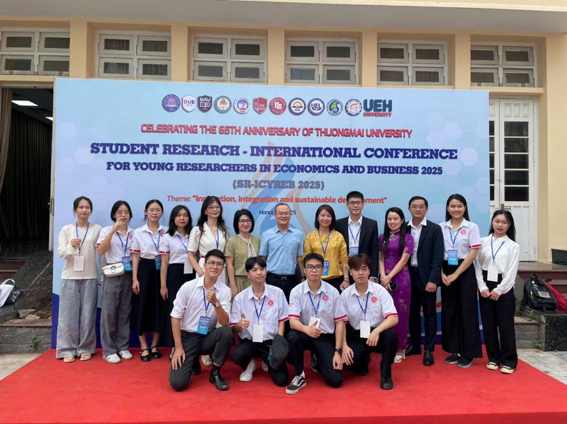 Ngày 10/10/2025, trong khuôn khổ thỏa thuận hợp tác toàn diện của 10 trường đại học khối ngành Kinh tế và Kinh doanh về việc đồng tổ chức Hội thảo Quốc tế sinh viên thường niên, Đoàn cán bộ, giảng viên, sinh viên Trường ĐH Ngoại Thương đã tham dự Hội thảo khoa học quốc tế Sinh viên nghiên cứu khoa học các trường đại học khối ngành kinh tế và kinh doanh 2025 (SR-ICYREB 2025) với chủ đề “Đổi mới sáng tạo, hội nhập và phát triển bền vững” đã diễn ra tại Trường Đại học Thương mại.