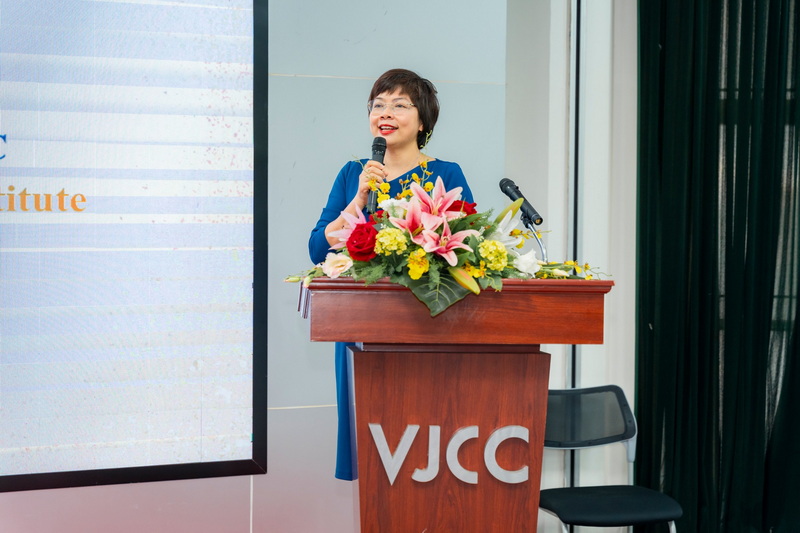 Phát biểu chúc mừng tại buổi lễ, PGS, TS Phạm Thu Hương khẳng định hệ sinh thái của Viện VJCC là môi trường đào tạo chất lượng cao với đầu vào các thí sinh xuất sắc của nhà trường. Với sự kết hợp hài hòa những tinh hoa của phương thức kinh doanh Nhật Bản và bản sắc văn hoá Việt Nam, Cô Hiệu trưởng một lần nữa khẳng định VJCC là điểm đến lý tưởng cho sinh viên xây dựng lộ trình học tập và phát triển sự nghiệp chắc chắn và bền vững. Cùng với những chia sẻ vô cùng gần gũi và thân thương về tinh thần dấn thân trải nghiệm và vượt qua khó khăn, PGS, TS Phạm Thu Hương cũng gửi lời chúc mừng và bày tỏ sự tin tưởng rằng các tân sinh viên K64 JIB và DB sẽ nhanh chóng hoà nhập trong môi trường mới, luôn giữ thái độ nghiêm túc trong học tập, rèn luyện và đạt kết quả tốt.