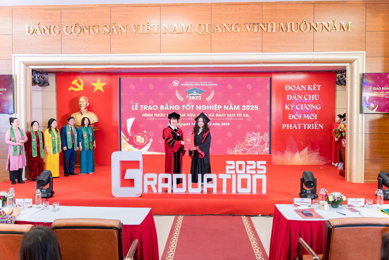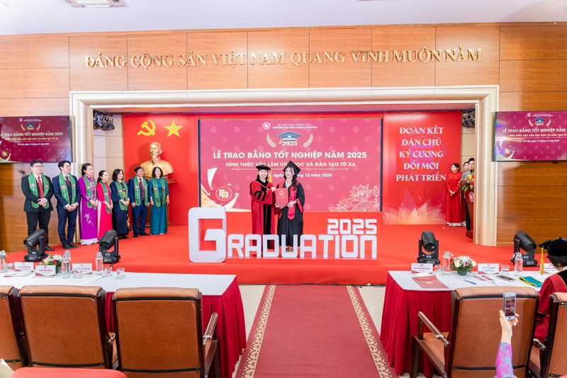 Sáng ngày 14/12/2025, Trường Đại học Ngoại Thương đã long trọng tổ chức Lễ tốt nghiệp năm 2025 cho sinh viên hình thức đào tạo vừa làm vừa học và hình thức từ xa.