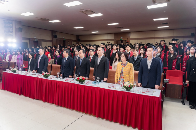 Buổi lễ có sự hiện diện của Lãnh đạo Nhà trường, Lãnh đạo Khoa Đào tạo trực tuyến và Phát triển nghề nghiệp, Trung tâm Nghiên cứu, Bồi dưỡng và Tư vấn kinh tế đối ngoại (Feretco), cùng lãnh đạo các đơn vị, đông đảo tân cử nhân cùng người thân tham dự.
