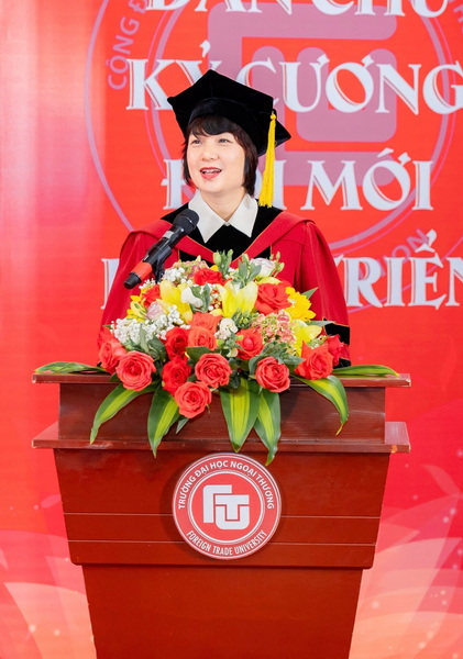 Tại buổi lễ, PGS, TS Phạm Thu Hương - Hiệu trưởng Nhà trường đã gửi lời chúc mừng cùng những dặn dò tới các tân cử nhân.