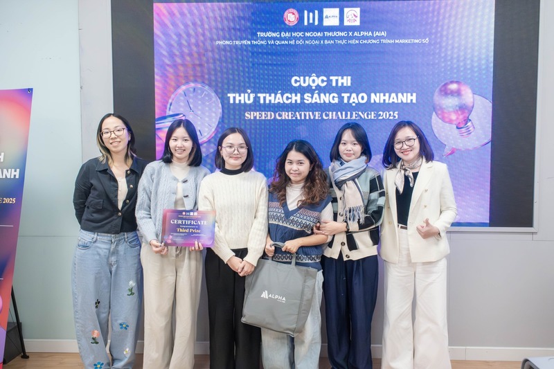Ngày 6/12/2025, Ban thực hiện chương trình Marketing số, Phòng Truyền thông và Quan hệ đối ngoại Trường ĐH Ngoại Thương đã phối hợp với Alpha powered by AIA tổ chức chương trình "Speed Creative Camp", đánh dấu một trải nghiệm đáng nhớ và giàu tính chuyên môn dành cho cộng đồng sinh viên đam mê Marketing.
