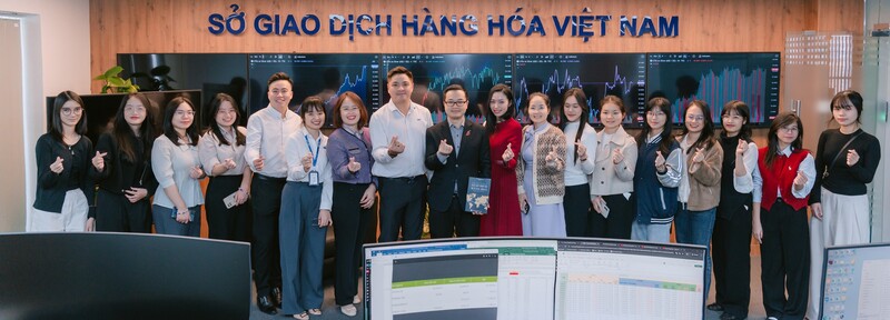 Tiếp đó, ngày 4/12/2025, đoàn học viên có chuyến tham quan Công ty Cổ phần Chứng khoán VPS, nơi ông Uông Văn Quang - Chuyên viên cao cấp tư vấn phái sinh, trực tiếp hướng dẫn giao dịch hợp đồng tương lai VN30 trên tài khoản demo, giúp học viên kết nối kiến thức lý thuyết với diễn biến thị trường trong thời gian thực. Chuỗi trải nghiệm khép lại vào ngày 8/12/2025 với chuyến tham quan Sở Giao dịch Hàng hóa Việt Nam (MXV), nơi bà Đoàn Thị Giang - Chuyên viên Khối Quản lý Giao dịch, hướng dẫn học viên giao dịch hợp đồng phái sinh hàng hóa trên nền tảng CQG – một công cụ chuyên nghiệp đang được sử dụng rộng rãi trên thị trường.
