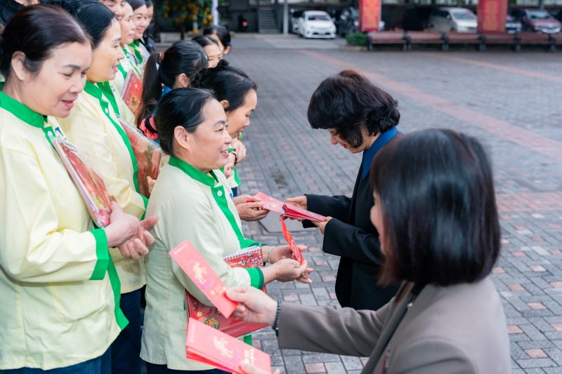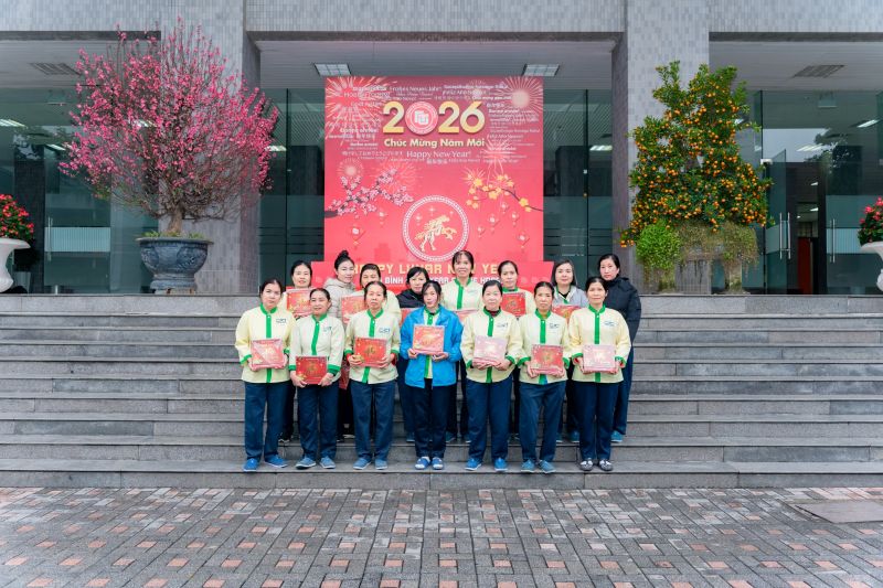 Nhân dịp Xuân mới Bính Ngọ 2026 đang đến gần, thầy cô lãnh đạo Trường cũng đã gửi lời chúc sức khỏe, may mắn và hạnh phúc tới các đồng chí lao công, bảo vệ cùng gia đình.