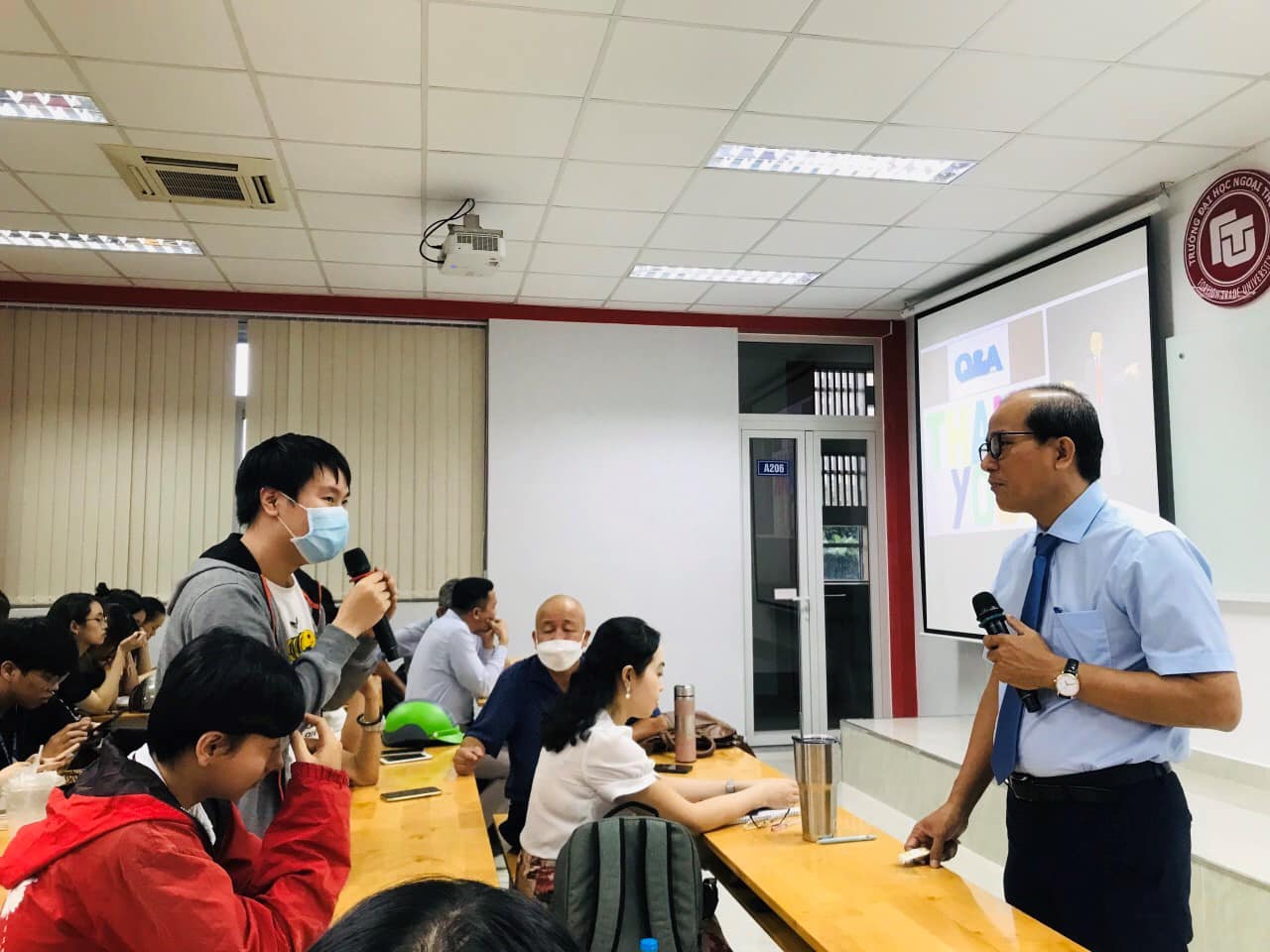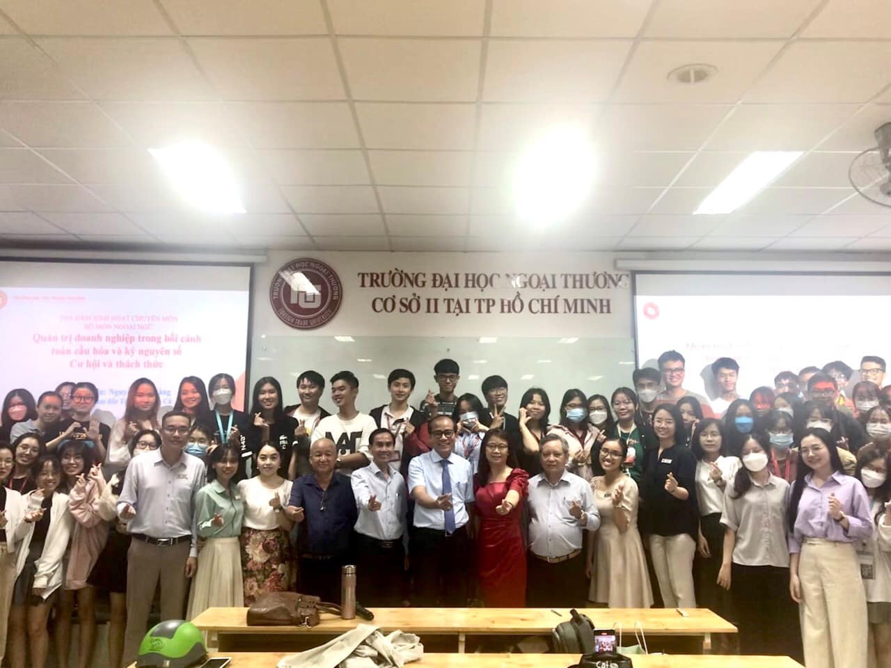Tiếp đó, ngày 24/09/2022, Bộ môn Ngoại ngữ Cơ sở II tại TP. HCM tiếp tục tổ chức tọa đàm “Quản trị doanh nghiệp trong bối cảnh toàn cầu hóa và kỷ nguyên số - Cơ hội và thách thức” với sự tham gia của diễn giả ông Nguyễn Văn Sáng - Phó Tổng Giám đốc Tập đoàn Đèo Cả.