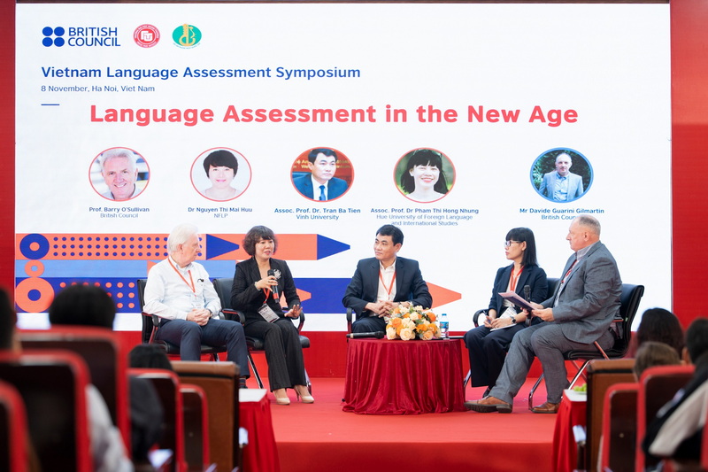 Cuối buổi sáng, chủ đề của hội thảo được tổng kết và mở rộng trong phiên thảo luận chuyên đề, quy tụ các chuyên gia hàng đầu như GS. Barry O’Sullivan, ông Davide Guarini Gilmartin (Hội Đồng Anh), TS. Nguyễn Thị Mai Hữu (Ban Đề Án Ngoại Ngữ Quốc Gia) và PGS., TS. Trần Bá Tiến - Phó Hiệu trưởng Trường Đại học Vinh và Tổng Biên tập Tạp chí Khoa học Đại học Vinh. Các diễn giả đã tập trung trao đổi chuyên sâu về chủ đề cốt lõi là Năng lực Đánh giá Ngôn ngữ (Language Assessment Literacy - LAL) trong bối cảnh kỷ nguyên mới.