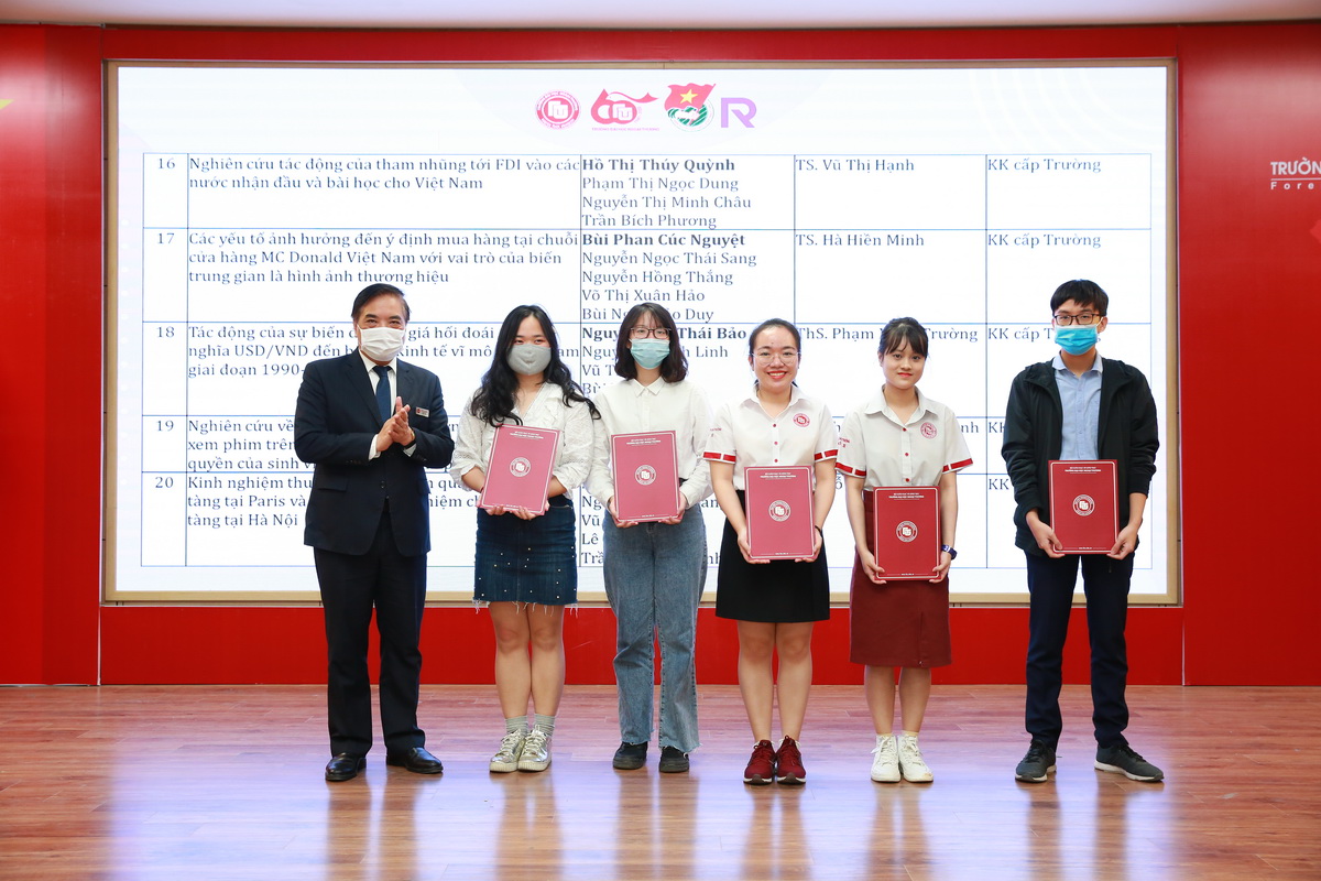 Phát biểu tại Hội nghị, PGS, TS Bùi Anh Tuấn đã nhiệt liệt chúc mừng và biểu dương những thành tích của các em sinh viên cũng như các giảng viên hướng dẫn trong công tác nghiên cứu khoa học ở sinh viên trong giai đoạn 2015 - 2020. Thầy cho rằng đây là kết quả đáng mừng của việc nhà trường có những đầu tư ngày càng mạnh hơn và thực chất hơn cho hoạt động nghiên cứu khoa học nói chung và nghiên cứu khoa học trong sinh viên nói riêng. PGS, TS Bùi Anh Tuấn nhấn mạnh trong thời gian tới, công tác nghiên cứu khoa học của sinh viên cần phải tiếp cận gần hơn với thực tiễn hoạt động của các doanh nghiệp, tổ chức, đem lại giá trị cao hơn và thiết thực hơn cho cộng đồng xã hội. Bên cạnh đó, cần tăng cường mối liên kết giữa cán bộ, giảng viên và sinh viên trong việc thực hiện các chương trình, đề tài nghiên cứu ở tất cả các cấp. Thầy bày tỏ kỳ vọng vào những bước phát triển đột phá, vượt bậc hơn nữa trong công tác đặc biệt quan trọng này trong thời gian tới đây, góp phần nâng cao năng lực cũng như vị thế của Nhà trường trong nghiên cứu khoa học. Cuối cùng, Thầy Hiệu trưởng đã tuyên bố phát động cuộc thi sinh viên nghiên cứu khoa học năm 2021 và chúc cho các nhóm nghiên cứu đạt được nhiều thành tích cao đáng tự hào.