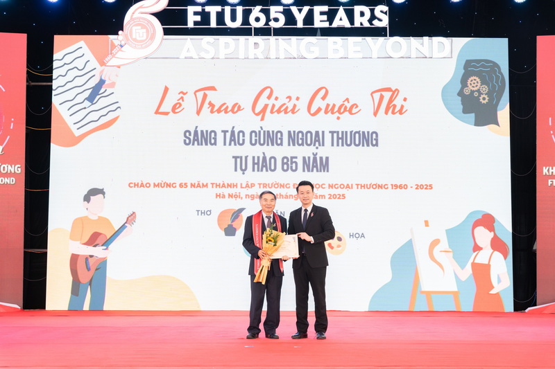 Đại diện Nhà trường đã trao giải, gửi lời chúc mừng, ghi nhận nỗ lực và tinh thần sáng tạo của các tác giả tham dự cuộc thi. Thầy nhấn mạnh ý nghĩa của hoạt động sáng tác trong việc lan tỏa giá trị văn hóa FTU và làm phong phú đời sống tinh thần của cộng đồng Ngoại thương.