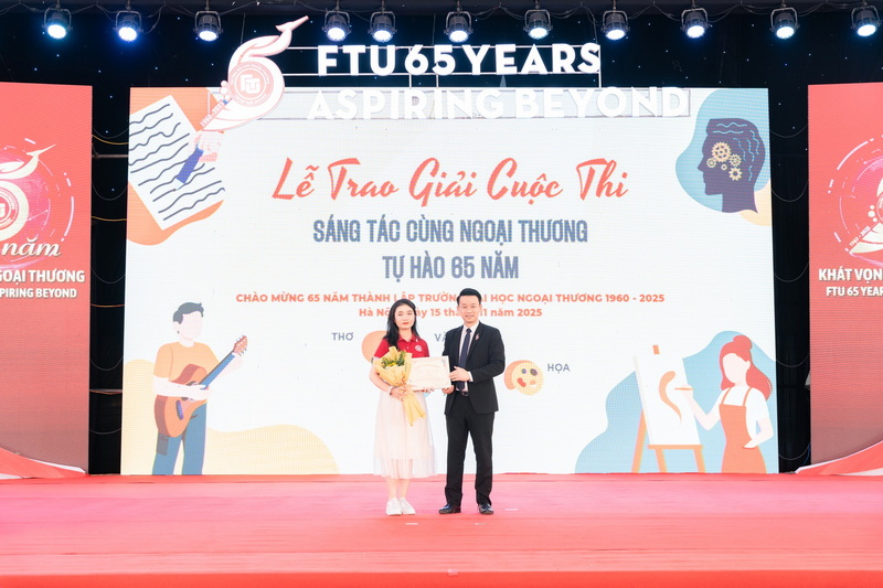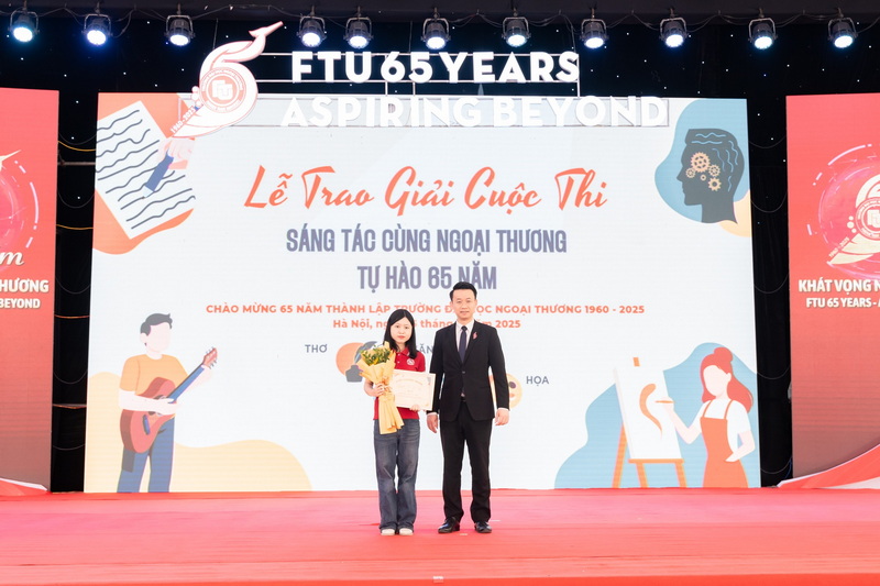 Buổi lễ khép lại trong không khí ấm áp và nhiều cảm xúc, đánh dấu một dấu ấn đẹp trong chuỗi hoạt động kỷ niệm 65 năm thành lập Trường Đại học Ngoại Thương. Những tác phẩm được vinh danh sẽ tiếp tục lan tỏa tinh thần sáng tạo và niềm tự hào Ngoại thương trong cộng đồng FTU.
