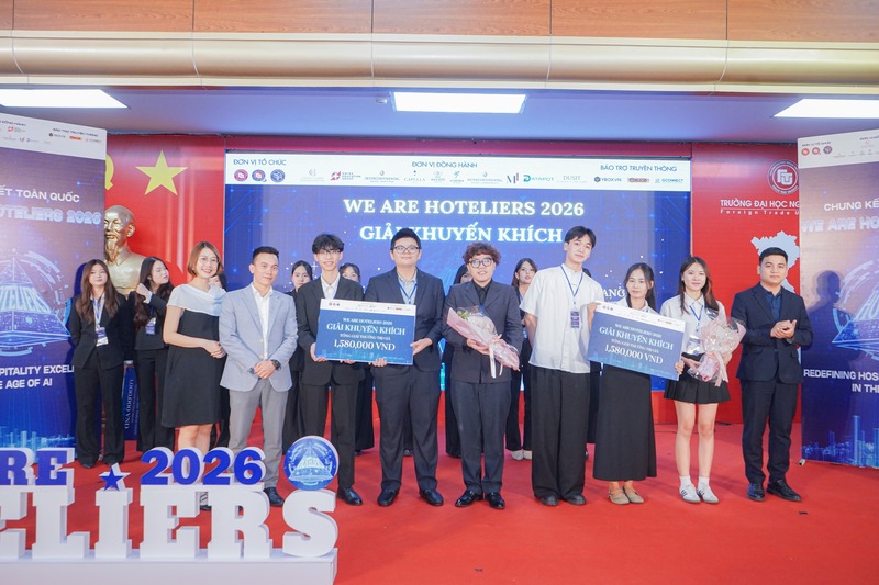 Ngày 02/4/2026, Khoa Quản trị Kinh doanh, Trường Đại học Ngoại Thương và Hội Sinh viên ngành Quản trị khách sạn (FHA) đã phối hợp tổ chức thành công vòng Chung kết cuộc thi We Are Hoteliers 2026, với sự đồng hành của nhiều đối tác uy tín trong lĩnh vực khách sạn - du lịch.