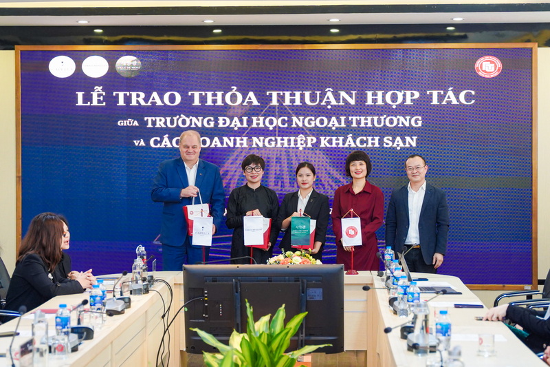 Ngày 16/01/2024, Khoa Quản trị kinh doanh, Trường ĐH Ngoại thương đã tổ chức Lễ trao biên bản ghi nhớ hợp tác (MOU) giữa Nhà trường và 3 doanh nghiệp khách sạn bao gồm Capella Hanoi, Grand Mercure Hanoi, Ville De Mont Mountain Resort.