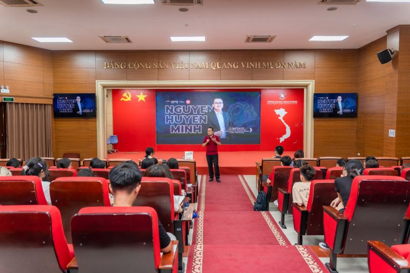 Mở đầu chương trình, thầy Nguyễn Huyền Minh chia sẻ về tầm quan trọng của chuỗi sự kiện định hướng nghề nghiệp, cũng như niềm tự hào khi Trường ĐH Ngoại thương hai năm liên tiếp (2024, 2025) được vinh danh là "The Most Winning University" tại Vietnam Young Lions. Thầy nhấn mạnh đây là minh chứng cho tài năng, bản lĩnh và sự sáng tạo của các thế hệ sinh viên FTU trên sân chơi marketing hàng đầu Việt Nam và quốc tế.