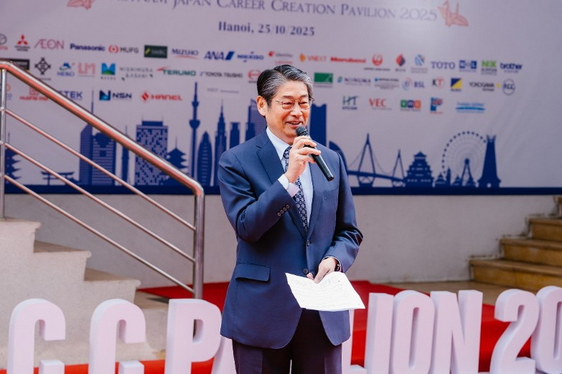 Phát biểu chào mừng tại Ngày hội Kết nối Việc làm & Phát triển Sự nghiệp Việt Nam – Nhật Bản “V.J.C.C Pavilion 2025”, Đại sứ Ito Naoki – Đại sứ Đặc mệnh Toàn quyền, Đại sứ quán Nhật Bản tại Việt Nam đã gửi lời cảm ơn tới Viện VJCC, Trường ĐH Ngoại Thương, Hiệp hội doanh nghiệp Nhật Bản tại Việt Nam (JCCI) và các bên liên quan đã nỗ lực đóng góp cho thành công của sự kiện. Với 43 doanh nghiệp Nhật Bản tham gia, sự kiện thể hiện rõ sự quan tâm và kỳ vọng của doanh nghiệp Nhật đối với nguồn nhân lực Việt Nam. Đề cập tới sự lãnh đạo của Tổng bí thư Tô Lâm và sự kiện thành lập chính quyền mới của Tân Thủ tướng Sanae Takaichi, Đại sứ khẳng định Nhật Bản tiếp tục coi Việt Nam là đối tác chiến lược không thể thiếu, cùng thúc đẩy tăng trưởng và hợp tác kinh tế song phương. Ông cũng kỳ vọng những chia sẻ của các cựu sinh viên ĐH Ngoại Thương đang làm việc tại doanh nghiệp Nhật sẽ là nguồn cảm hứng cho sinh viên tham dự. Cuối cùng, Đại sứ cũng gửi lời chúc sự kiện sẽ diễn ra thành công tốt đẹp và bày tỏ mong muốn tình hữu nghị Việt Nam – Nhật Bản ngày càng bền chặt.