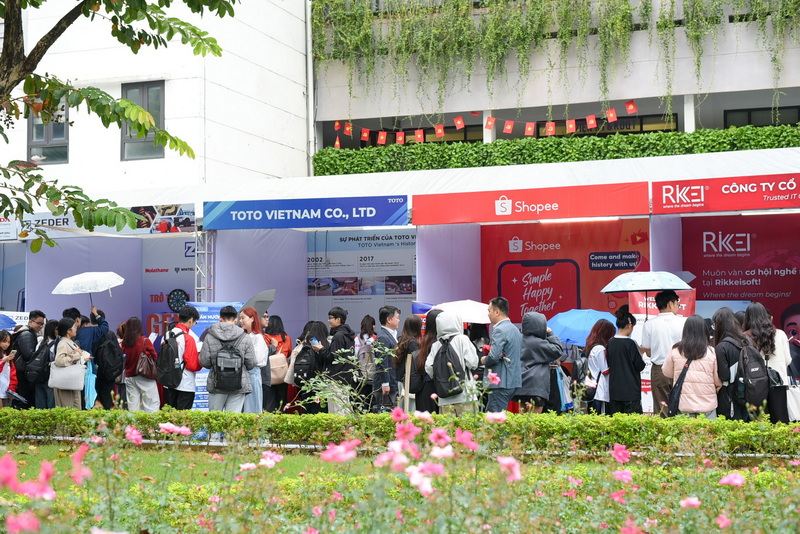 Tham dự lễ khai mạc có PGS, TS Vũ Thị Hiền - Phó Hiệu trưởng; TS Bùi Liên Hà - Trưởng Phòng Công tác Chính trị và Sinh viên; ThS Nguyễn Huyền Minh - Trưởng phòng Truyền thông và Quan hệ đối ngoại; TS Hoàng Tuấn Dũng - Giám đốc Trung tâm Hỗ trợ sinh viên; Đại diện Đoàn Thạn niên Trường; Trưởng, Phó một số đơn vị trong trường, các đơn vị tuyển dụng, nhà tài trợ, nhà đồng hành, nhà bảo trợ, các thầy cô giáo và đông đảo các bạn sinh viên.