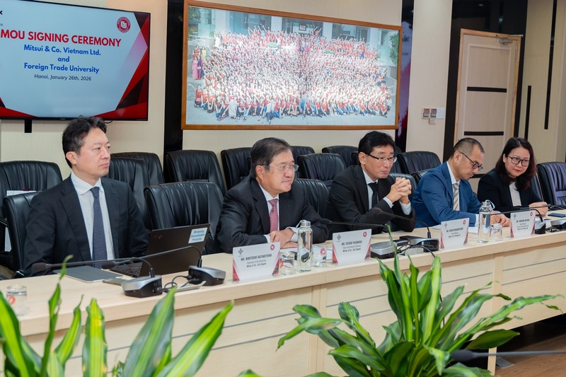 Ngày 26/01/2026, Trường Đại học Ngoại Thương đã tổ chức Lễ ký kết Biên bản ghi nhớ hợp tác với Công ty TNHH Mitsui Việt Nam. Sự kiện đánh dấu một cột mốc quan trọng trong chiến lược tăng cường hợp tác giữa nhà trường và doanh nghiệp, hướng tới mục tiêu gắn kết đào tạo với thực tiễn và phát triển nguồn nhân lực chất lượng cao trong bối cảnh hội nhập quốc tế sâu rộng.