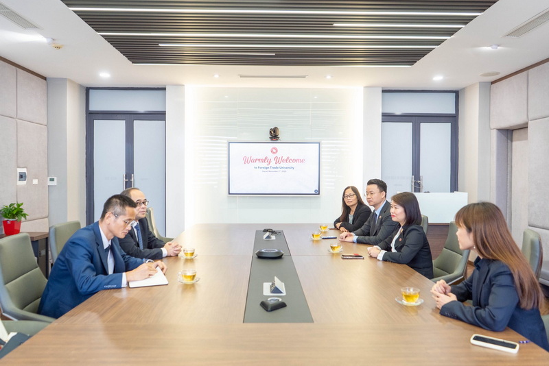 Ngày 05/11/2025, PGS, TS Vũ Thị Hiền - Phó Hiệu trưởng Trường ĐH Ngoại Thương đã chủ trì buổi đón tiếp và làm việc với Ngài La Diệu Quang – Tham tán Giáo dục và ông Vương Đình Quán – Bí thư thứ nhất của Đại sứ quán Trung Quốc tại Việt Nam.