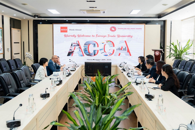 Ngày 28/10/2025, trong khuôn khổ hợp tác chiến lược giữa Hiệp hội Kế toán Công chứng Anh Quốc (ACCA) và Trường ĐH Ngoại Thương (FTU), lãnh đạo hai bên đã có buổi làm việc trực tiếp nhằm thảo luận các định hướng hợp tác trong giai đoạn mới, đồng thời ra mắt Trung tâm thi ACCA trên máy linh hoạt (On-Demand Computer-Based Exams – ODCBE) tại Trường ĐH Ngoại Thương.