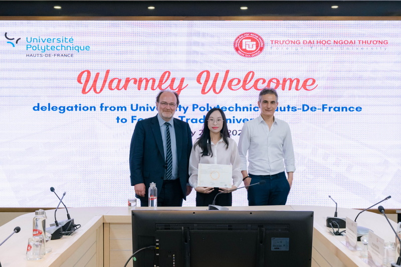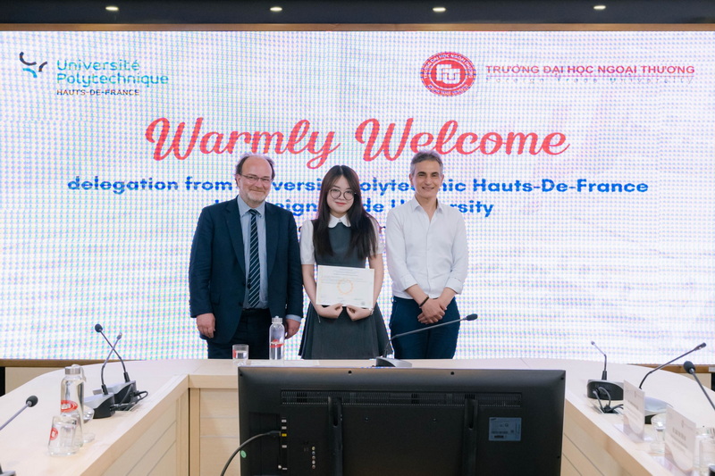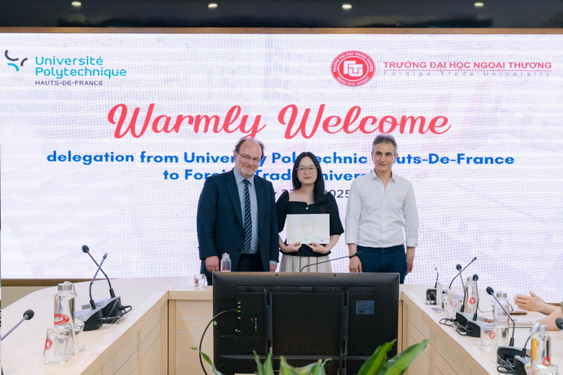 Ngày 22/5/2025, Trường ĐH Ngoại thương đã đón tiếp đoàn lãnh đạo cấp cao từ Trường Université Polytechnique Hauts-de-France (UPHF) (Cộng hòa Pháp) tới thăm, làm việc, ký kết gia hạn Thỏa thuận hợp tác và thảo luận những hướng đi mới trong công tác hợp tác giữa hai trường trong tương lai.